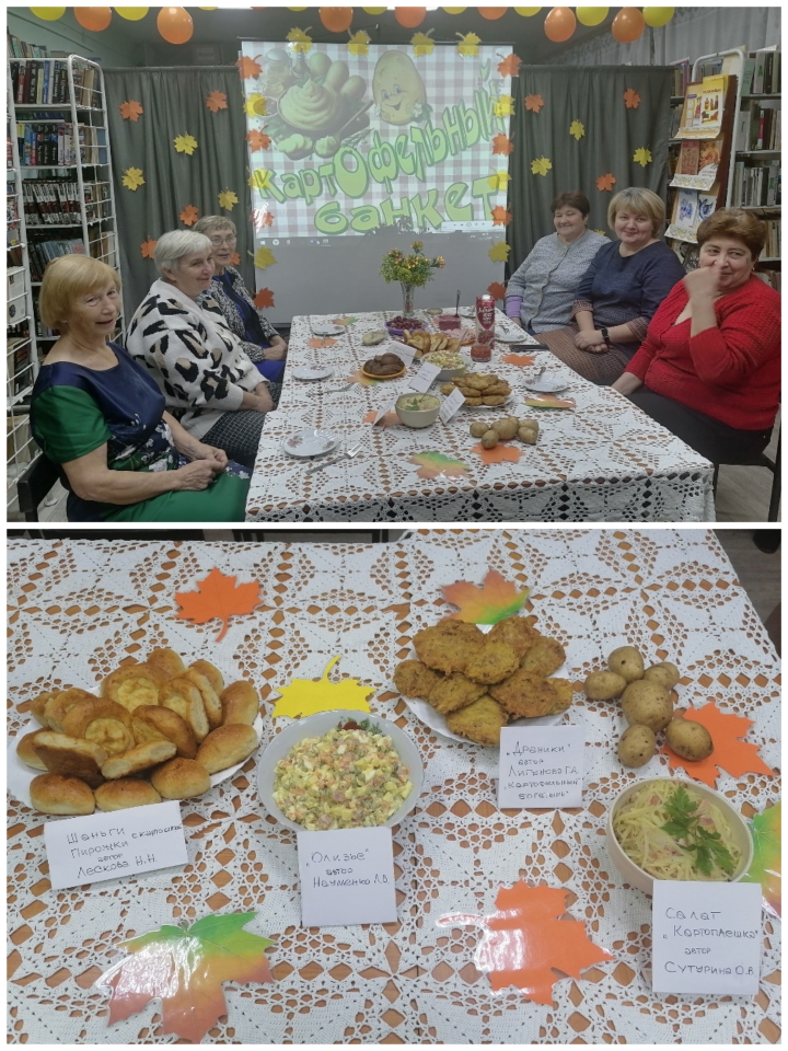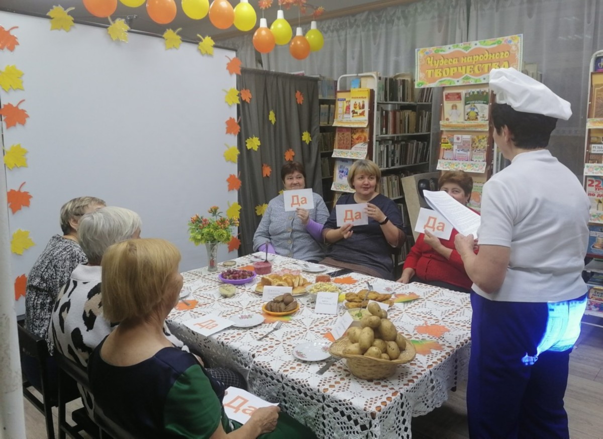 Осень самая богатая пора! Урожай собран, кладовые полны запасов на зиму. И самый богатый урожай у огородников это урожай картошки. Трудно себе представить, что еще менее пятисот лет назад ни в Европе, ни в России не знали картофеля, в то время как в Европе, и в Азии картофель уже стал национальным блюдом. Картофель стал «королем овощей» благодаря своей плодоносности, универсальности, выносливости, высоким вкусовым качествам. Не зря русская пословица гласит: «Ель да береза, чем не дрова? Соль да картошка – чем не еда?!» 17 октября в библиотеке-филиале №4 состоялся праздник урожая «Картофельный банкет». В этот день чествовали продукт, который во многих странах считают вторым хлебом. Всех присутствующих познакомили с историей появления картофеля в России, о пользе этого корнеплода, о том, что картофель обладает совершенно необычными свойствами, его используют не только как продукт питания, но и в косметологии и народной медицине. Далее встреча сопровождалась веселыми конкурсами, интересными загадками, была проведен турнир на звание «Почётного картофелевода». Современную кухню сложно представить без блюд из картофеля. На «банкете» были представлены блюда, приготовленные участницами мероприятия: драники, салаты, картофельные ватрушки, пирожки и многое другое. Гости остались довольны банкетом, открыв для себя очень много нового о таком, казалось бы, известном повседневном продукте.