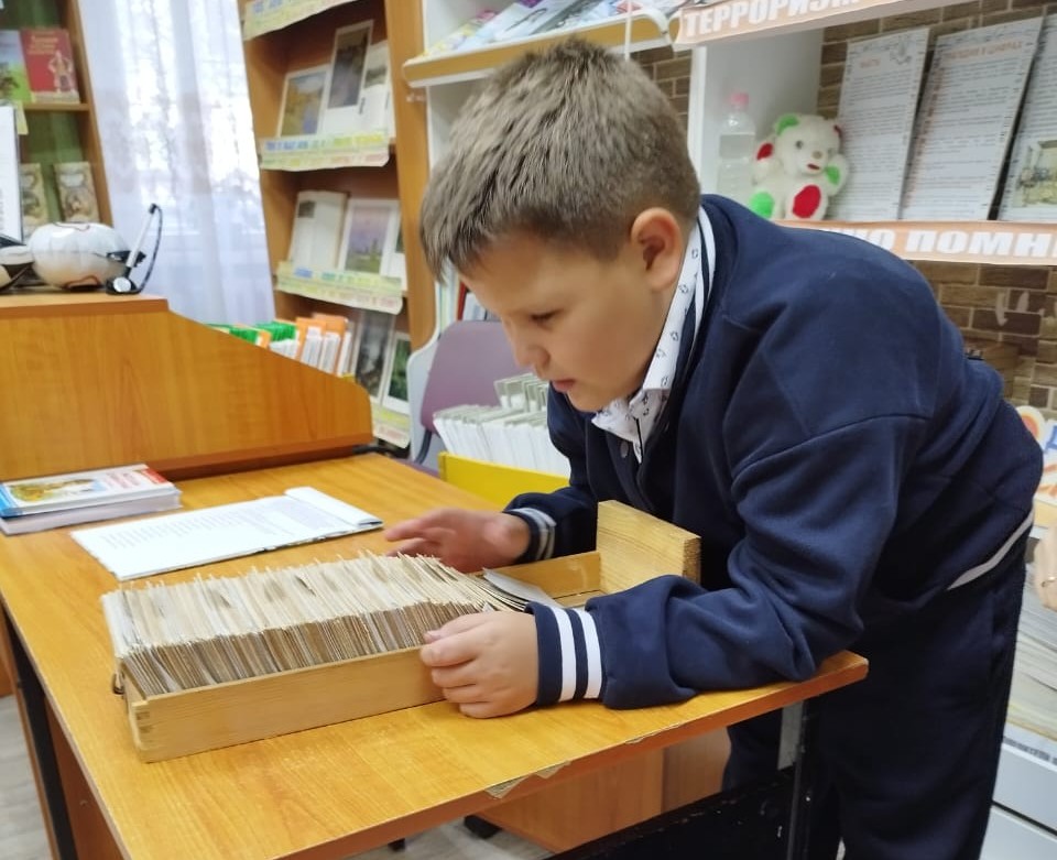 10 сентября в библиотеке-филиале №4 прошел библиотечный урок-экскурсия «Нужно знать - где, что искать». В начале встречи, второклассники МБОУ СОШ №3 (корпус 1, кл. руководитель Аллабергенова М.П.) обобщили свои знания о библиотеке и книге, а затем познакомились с алфавитным каталогом. Ребята узнали, что алфавитный каталог играет очень большую роль среди библиотечных каталогов, а его относительно простое построение делает простым и быстрым поиск конкретных документов, находящихся в библиотеке, рассмотрели, какие сведения заносятся на каталожную карточку. Закреплением урока стал тренинг с детьми по поиску литературы в каталоге. Ребята с удовольствием осваивали навыки самостоятельного поиска нужной им книги в каталоге.