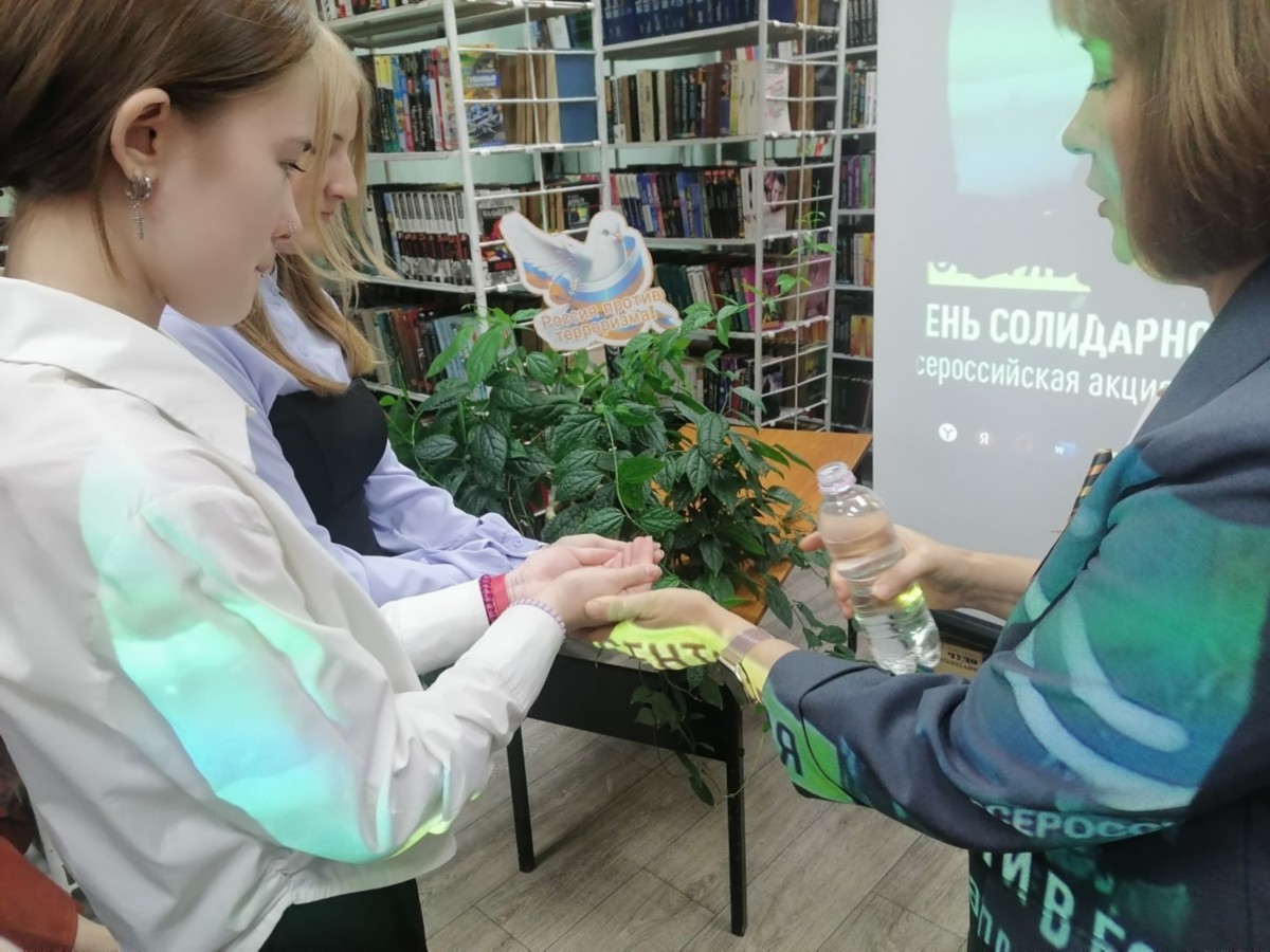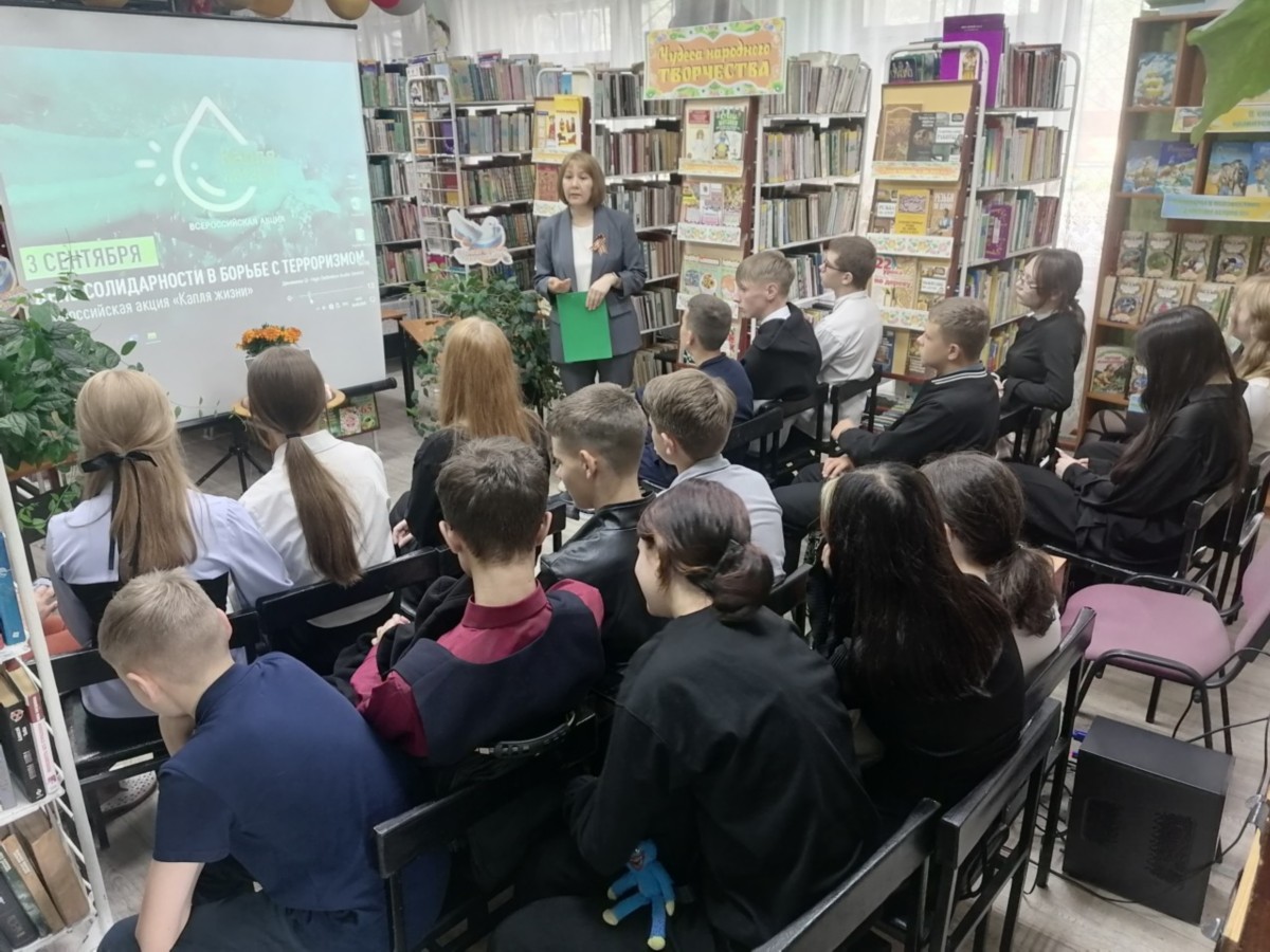 3 сентября, в День солидарности в борьбе с терроризмом, библиотека-филиал №4 стала местом памяти и единства. Мы провели особенный час памяти «Беслан. Капля жизни» - мероприятие, которое затронуло сердца каждого присутствующего. В ходе встречи ребята, учащиеся 8 класса МБОУ СОШ №3 (корпус 1, кл. руководитель Суший И.Ю.) погрузились в историю тех страшных дней. Акция «Капля жизни» стала кульминацией мероприятия. Во время трагедии в Беслане заложники в течение трёх дней не могли выпить ни капли воды. Основной смысл акции заключается в том, чтобы символически напоить водой тех, кого уже нет с нами. Участники акции набирали воду в сложенные лодочкой ладони и поливали растения из рук. Этот жест символизирует нашу общую скорбь и сострадание к жертвам террористических актов, а также нашу решимость противостоять этой угрозе. Вода, как символ жизни, становится знаком памяти о тех, чью жизнь отнял терроризм. Мы верим, что такие встречи помогают нам стать лучше, внимательнее друг к другу и помнить о том, как хрупок мир. Спасибо всем, кто был с нами в этот день! Пусть память о трагедии Беслана станет напоминанием о том, как важно беречь мир и ценить каждую человеческую жизнь! #КапляЖизни #противтеррора #этонеиграАнтитеррор