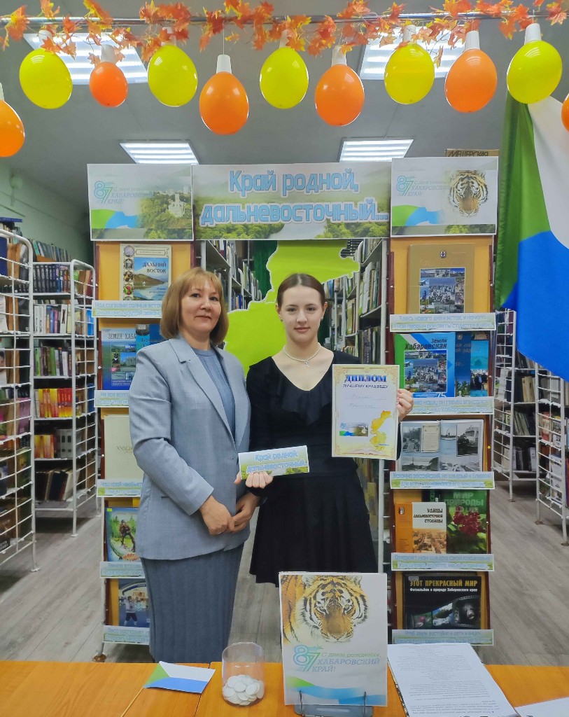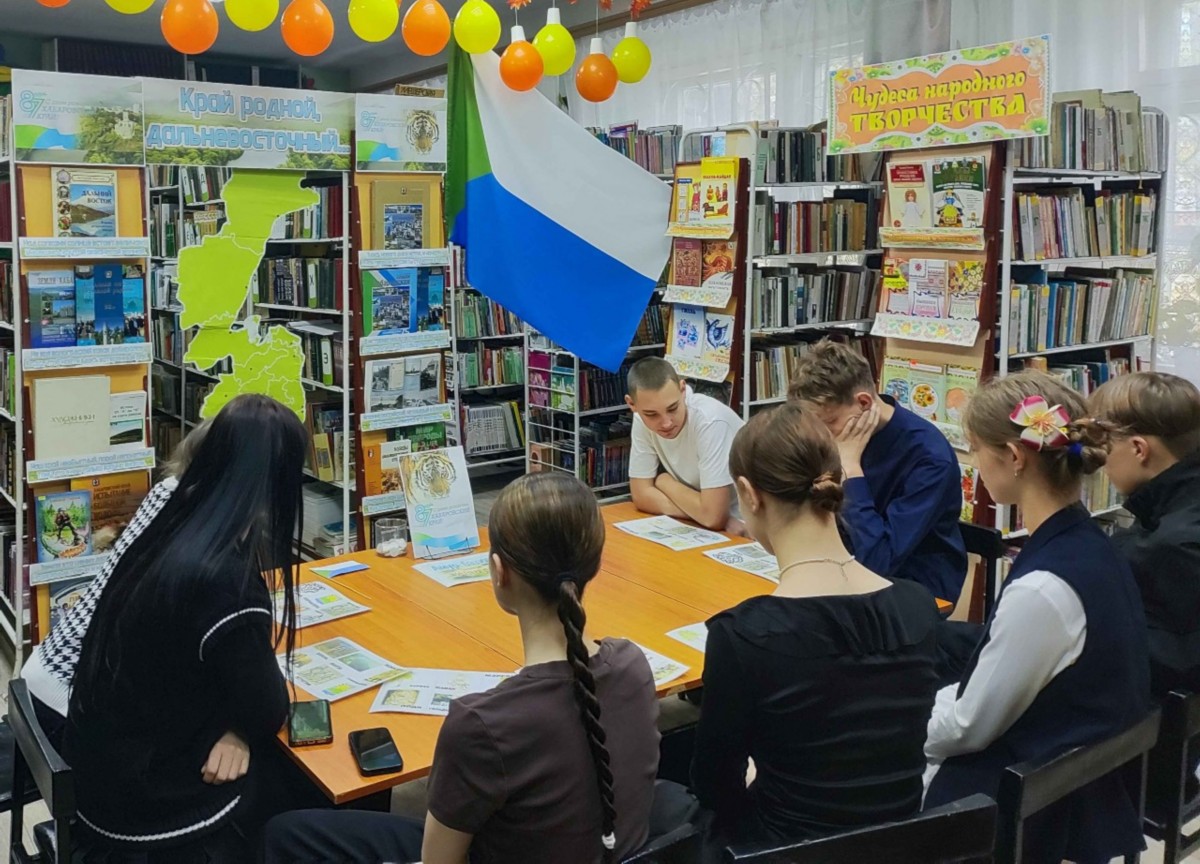 17 октября, в преддверии 87-летия со дня образования Хабаровского края, в библиотеке-филиале №4 состоялась игра «Лучший краевед». Ребятам, учащимся 9 «Е» класса МБОУ СОШ №3 (корпус 1, кл. руководитель Николаева К.А.), было предложено интеллектуальное краеведческое лото. Слушая вопросы ведущего, игрокам предстояло найти правильный ответ на карточках, в которых содержались изображения людей и объектов, животных, растений, связанных с историей, литературой и географией Хабаровского края. Каждый правильный ответ, закрывал картинку в карте и приближал игрока к его победе. В итоге, звание «лучший краевед» досталось Фоменко Кристине, а все участники игры получили сладкие призы. Благодарим всех участников за игру, за вашу активность и вовлеченность и за подаренное нам хорошее настроение!